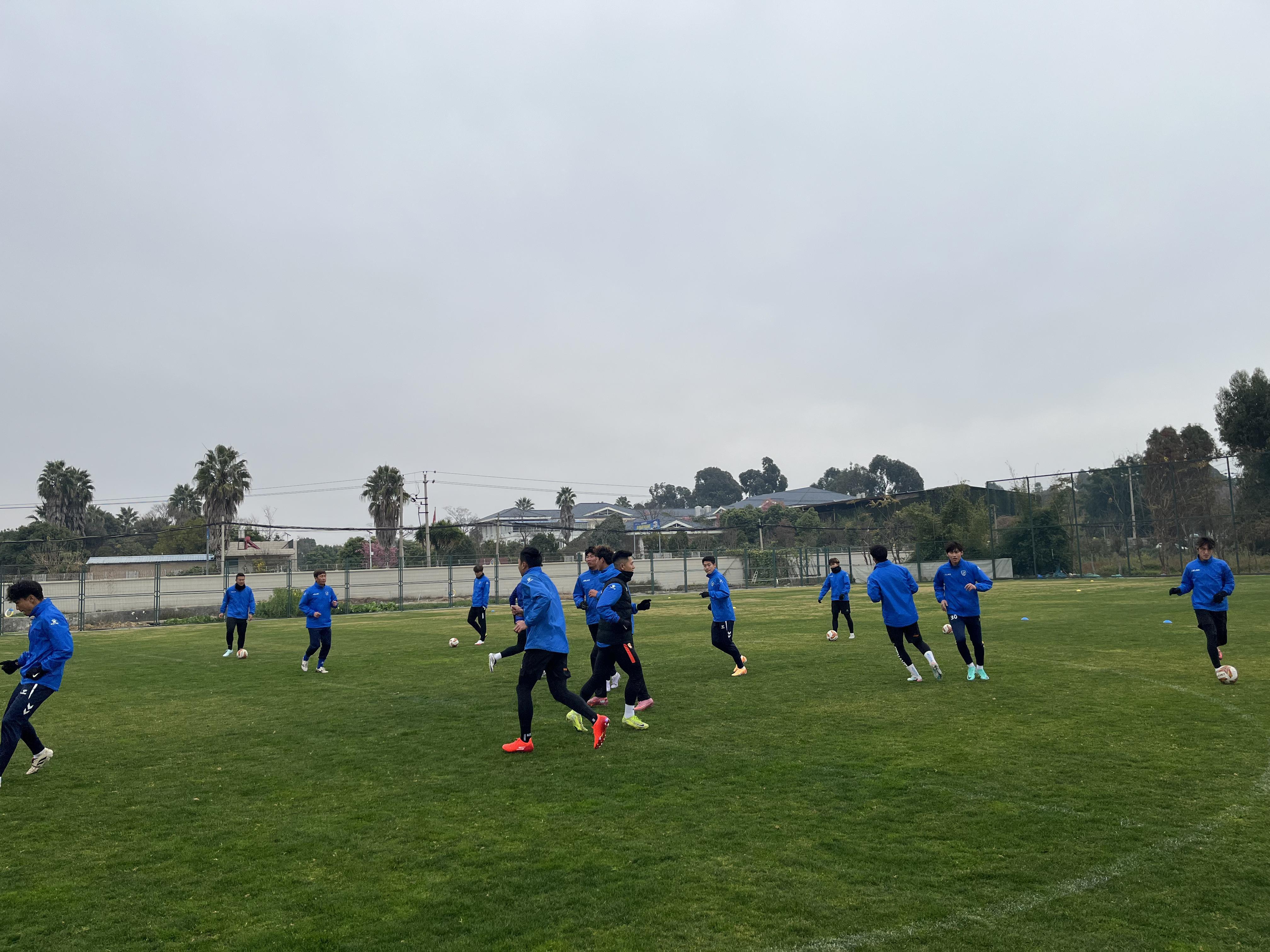 昆明气温骤降,寒意袭人,但海埂训练基地内却是一片热火朝天的景象。昆明队的球员们冒着严寒,在绿茵场上积极投入赛前训练,为即将到来的这场特殊对决做最后准备。传球、接球、射门练习井然有序,半场攻防演练紧张激烈,球员们奔跑、呼喊、汗水挥洒,每一个动作都透露出认真的态度和对比赛的期待。